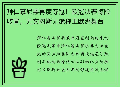 拜仁慕尼黑在与门兴格拉德巴赫的比赛中取得的胜利,不仅是本赛季的一场重要胜利,更是他们争夺联赛冠军道路上的关键一步。随着赛季的推进,拜仁慕尼黑正以稳健的步伐向着赛季目标迈进,球迷们也将期待着球队在接下来的比赛中继续创造辉煌。